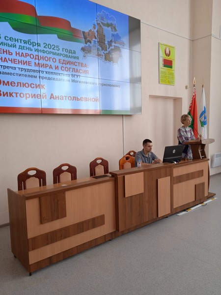 О воссоединении белорусского народа после его разделения в результате Рижского мирного договора 1921 года и нахождении Западной Беларуси в составе Польши, миролюбивой внешней политике Республики Беларусь в условиях перманентной гибридной войны обсудили на едином дне информирования, с участием заместителя председателя Могилевского горисполкома Омелюсик Викторией Анатольевной.