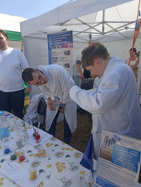 Также под руководством председателя Совета молодых ученых БГУТ, аспиранта Радковского Ивана, студентами химико-технологического факультета Стержановым Владимиром, Просмыцким Никитой, Красницким Егором, Воробьевым Константином был проведен мастер-класс по тематике «Лаборатория будущего», который вызвал интерес среди посетителей выставки. Каждый из гостей смог попробовать свои силы в опытах, проявить свой талант и смекалку и освоить основные навыки выполнения предложенного задания.