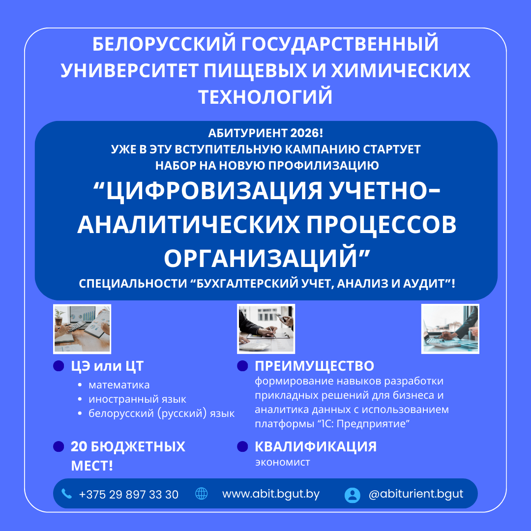 Перед гостями выступили представители приемной комиссии университета, руководители факультетов. Они рассказали ребятам об особенностях приемной кампании 2026 года, новой специальности "Экологическая безопасность" (вступительные испытания: математика, физика и белорусский/русский язык по выбору) и новой профилизации "Цифровизация учетно-аналитических процессов организаций" (вступительные испытания: математика, иностранный язык и белорусский/русский язык по выбору), преференциях для выпускников классов инжененрной и аграрной направленностей. Особое внимание уделили целевой подготовке специалистов с высшим образованием в БГУТ!