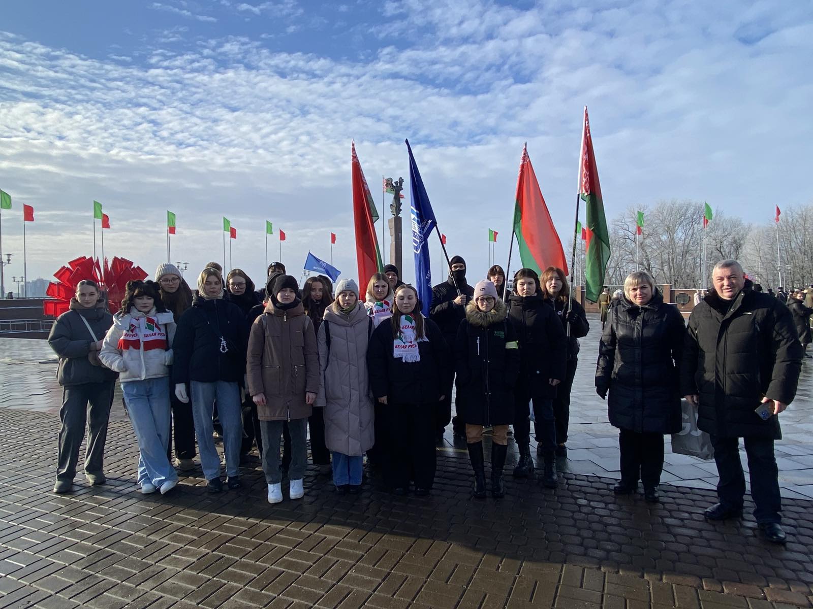 Студенты БГУТ, заместители деканов по ИВР Орлов О.Е., Прохорцова Т.В. , Климова Ю.Е., куратор Могилевчик Н.А. приняли участие в торжественной церемонии возложения цветов к Вечному огню на Площади Славы!