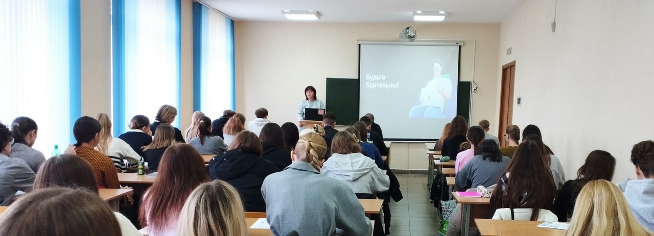 22.10.2025 состоялась встреча студентов инженерно-инновационного факультета 2 и 3 курсов специальности Инженерная экономика с заместителем управляющего дополнительного офиса по продажам ОАО "Сбер Банк" Инной Леонидовной Акшевской на тему "Финансовая безопасность".