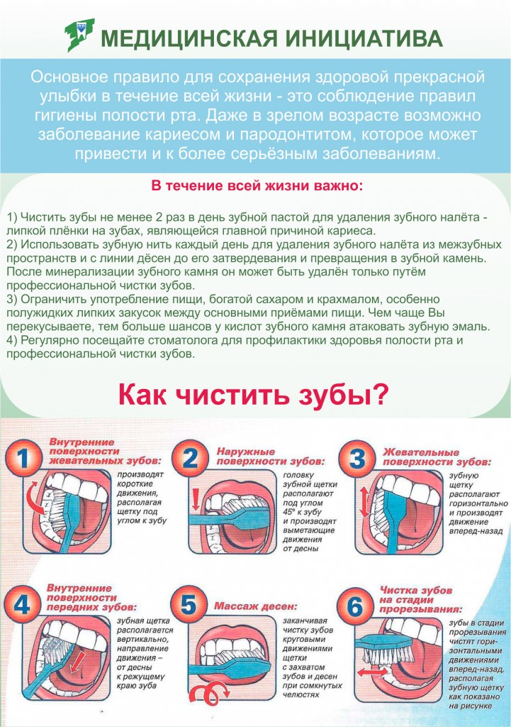 Качественная и регулярная чистка зубов. Чистите зубы минимум два раза в день — утром и вечером, уделяя процедуре 2–3 минуты. По возможности очищайте зубы и после каждого приема пищи.