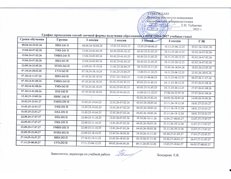 | ГРАФИК ПРОВЕДЕНИЯ СЕССИЙ ЗАОЧНОГО ОБУЧЕНИЯ |