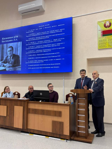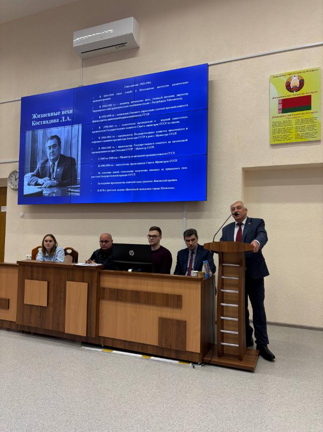 Жмыхов И. Н., проректор по научной работе Акулич А. В. рассказали о личности Костандова Л.А., основных вехах его жизненного пути, о значении, которое имела вся деятельность этого человека в становлении химической промышленности нашей страны, в развитии социальной сферы нашего города.