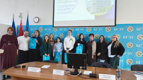 27 марта 2026 года команда3 курса группы БУП-231 в составе Барановой Елизаветы, Демидовой Екатерины, Бутримовой Дарьи, Глаз Виктории, Моисеенко Вадима, Рученя Сергея, Янушевской Софии в сопровождении зав.кафедрой Люштик Ольги Олеговны приняла участие в 5 Межуниверситетской Олимпиаде по бухгалтерскому учёту в Белорусском государственном экономическом университете в г.Минске.