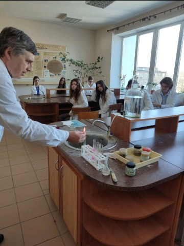 Преподаватели кафедры ХТВМС провели лабораторные занятия для школьников 10-11 классов СШ 25, 38 и 44 г. Могилёва по темам: "Тонкослойная хроматография и разделение красителей", "Оценка пищевой ценности белков", "Жёсткость воды", "Химические реакции в качественном и количественном анализе".