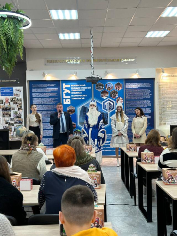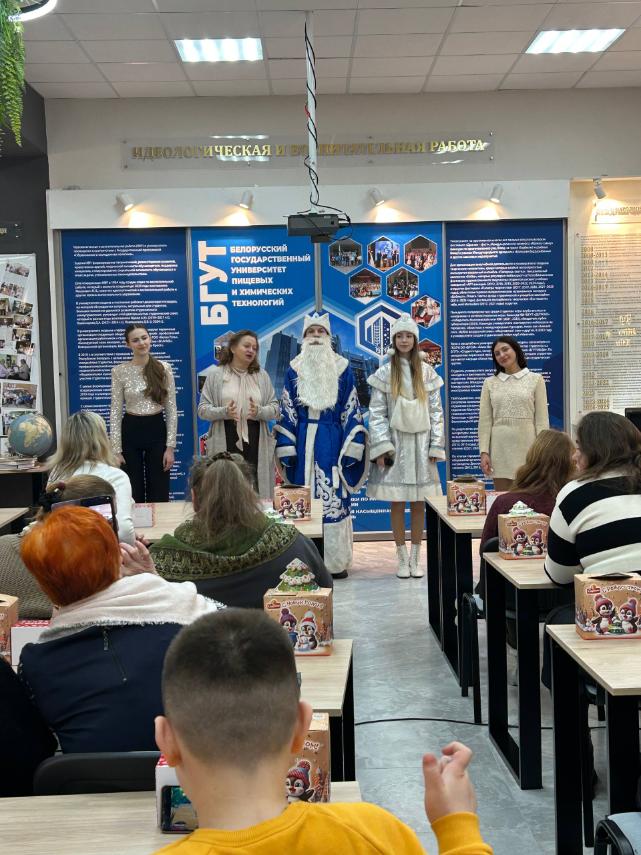 Сегодня  в канун Старого Нового года  силами  отдела по идеологической и воспитательной работе  совместно со студенческим самоуправлением общежитий БГУТ подготовлена  и проведена  Рождественская  благотворительная акция с вручением подарков 19  детям инвалидам и молодым инвалидам.
