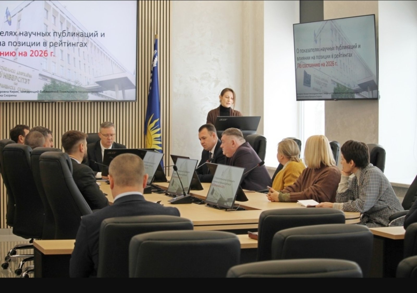 В ходе круглого стола коллеги рассказали о подходах к продвижению позиций университета в международных рейтингах, познакомились с опытом ГГУ в развитии инновационной деятельности, в том числе повышении публикационной активности работников университета в высокорейтинговых научных изданиях.