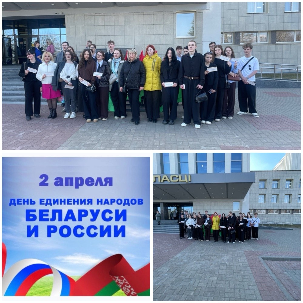 2 апреля 2026 года сотрудники ОИВР учреждения образования "Белорусский государственный университет пищевых и химических технологий" Ковалёва Л.В., Ридевская С.А., Шпилькова В.Ф., Стальмахова Г.И. со студентами посетили праздничное мероприятие ко Дню единения народов Беларуси и России в УК "Могилевский областной методический центр народного творчества и культурно-просветительной работы".