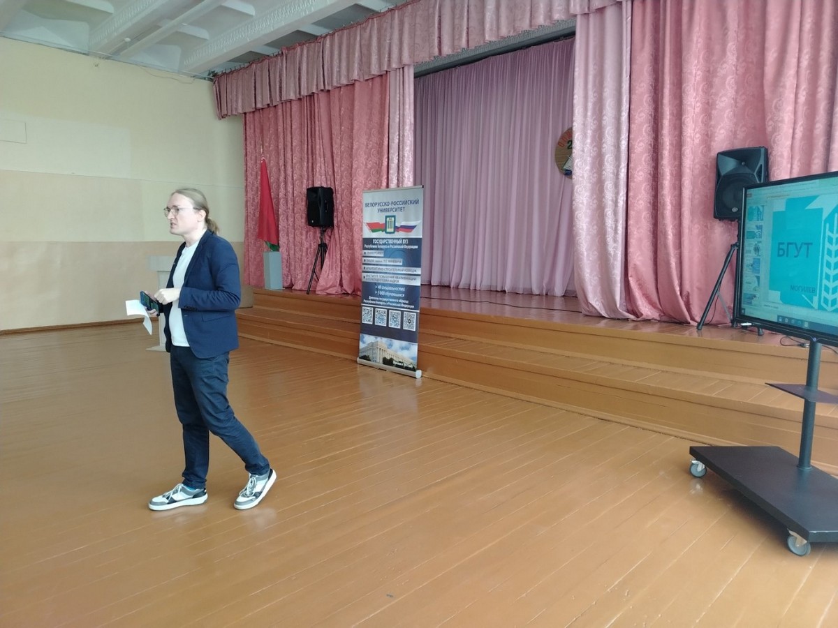 30.10.2025 г. преподаватели кафедры социально-гуманитарных дисциплин и физической культуры БГУТ Грибановский С.П. и Паролева Д.С. посетили с профориентационной работой Среднюю школу 2 города Черикова.