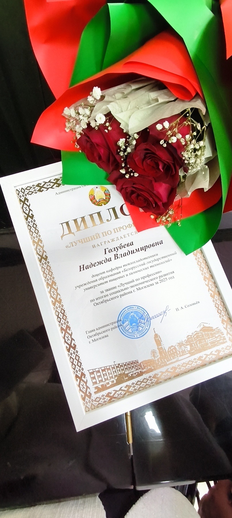 Поздравляем Голубеву Надежду Владимировну, к.т.н., доцента кафедры теплохладотехники, с присвоением звания «Лучший по профессии» по итогам социально-экономического развития Октябрьского района г. Могилёва за 2025г!
