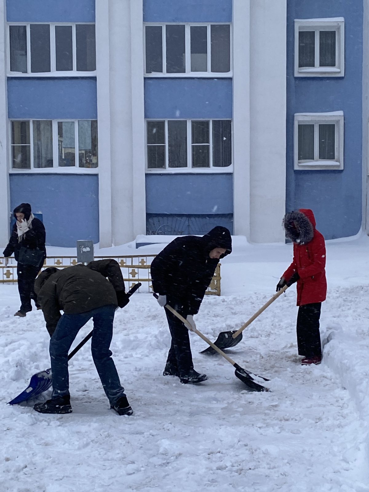 Сегодня сотрудники , преподаватели и студенты университета бросились на борьбу со снежной стихией
