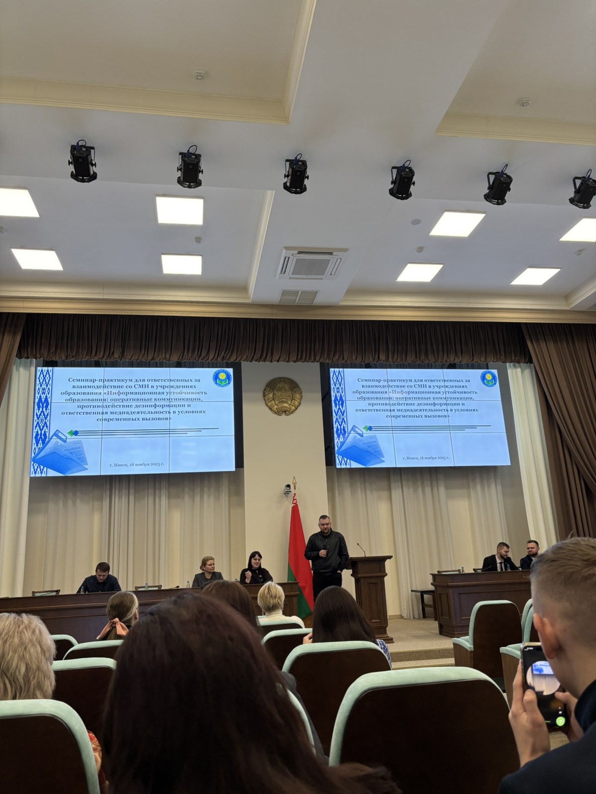 18 ноября 2025 года в Минске в Министерстве образования Республики Беларусь состоялся семинар‑практикум для специалистов, ответственных за взаимодействие со СМИ в учреждениях образования.