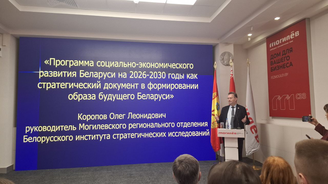 Коропов О.Л. - руководитель Могилевского регионального отделения БИСИ познакомил с Программой социально-экономического развития Беларуси на 2026-2030 годы, которая направлена на формирование образа будущего Беларуси.