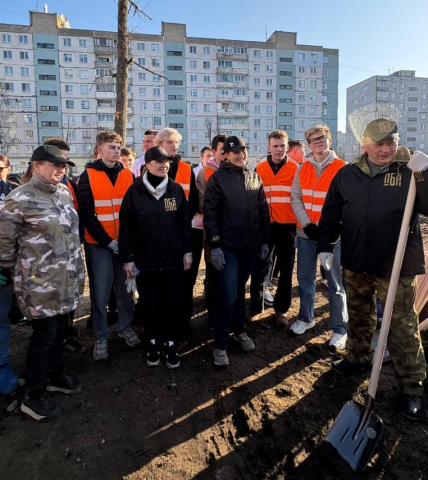 Проректор по ИВР Мацикова О.В., студенты университета всех факультетов приняли участие в субботнике с администрацией Октябрьского района г.Могилева
