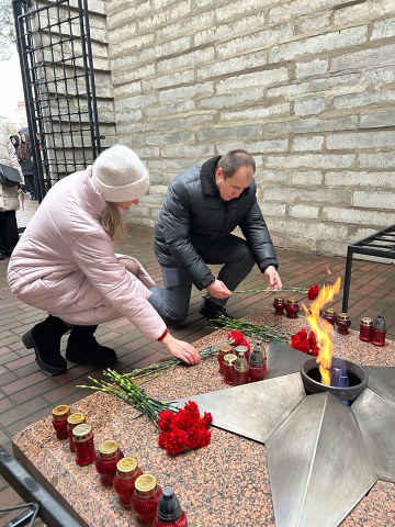 Участники мероприятия возложили цветы к Вечному огню, почтили минутой молчания память невинных людей, ставших жертвами трагических страниц истории, выразили глубокое уважение их мужеству и стойкости.
