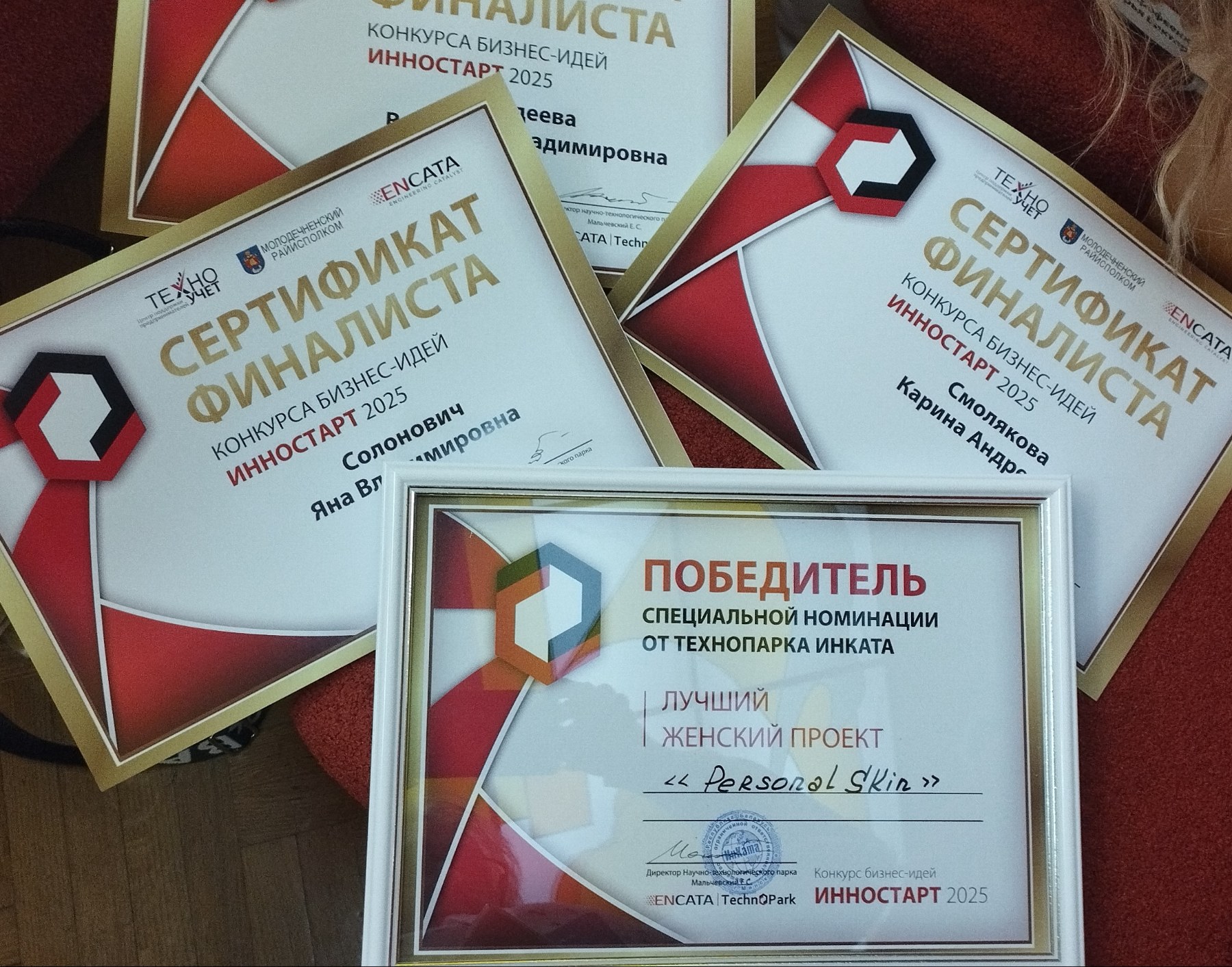 11.12.2025 студенты инженерно-инновационного факультета специальности "Инженерная экономика" Белорусского государственного университета пищевых и химических технологий вместе с руководителями проектов Какорой М.И. и Ерофеенко Д.В. приняли участие в финале Республиканского конкурса бизнес-идей Инностарт-2025, который проходил в этом году в городе Молодечно с поддержкой научно-технологического парка ИнКата. Бизнес-проект" Умный" шкаф для аренды инструментов (команда гр. УИП - 221) стал победителем в специальной номинации "IoT интернет-вещей". Бизнес-проект "Personal Skin: Smart- центр персонализированной красоты и здоровья" (команда гр. ЭБПП-231) стал победителем в специальной номинации "Лучший женский проект". Высокий уровень проведения конкурса и экспертного мнения жюри позволил нашим студентам конкурировать в финале с представителями уже существующего бизнеса. В ходе проведения мероприятия было налажено сотрудничество с представителями ООО "Минский городской технопарк" и НТП ИнКата для дальнейшей совместной плодотворной работы.