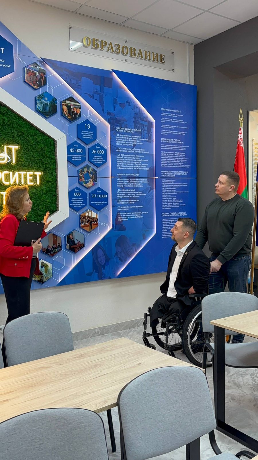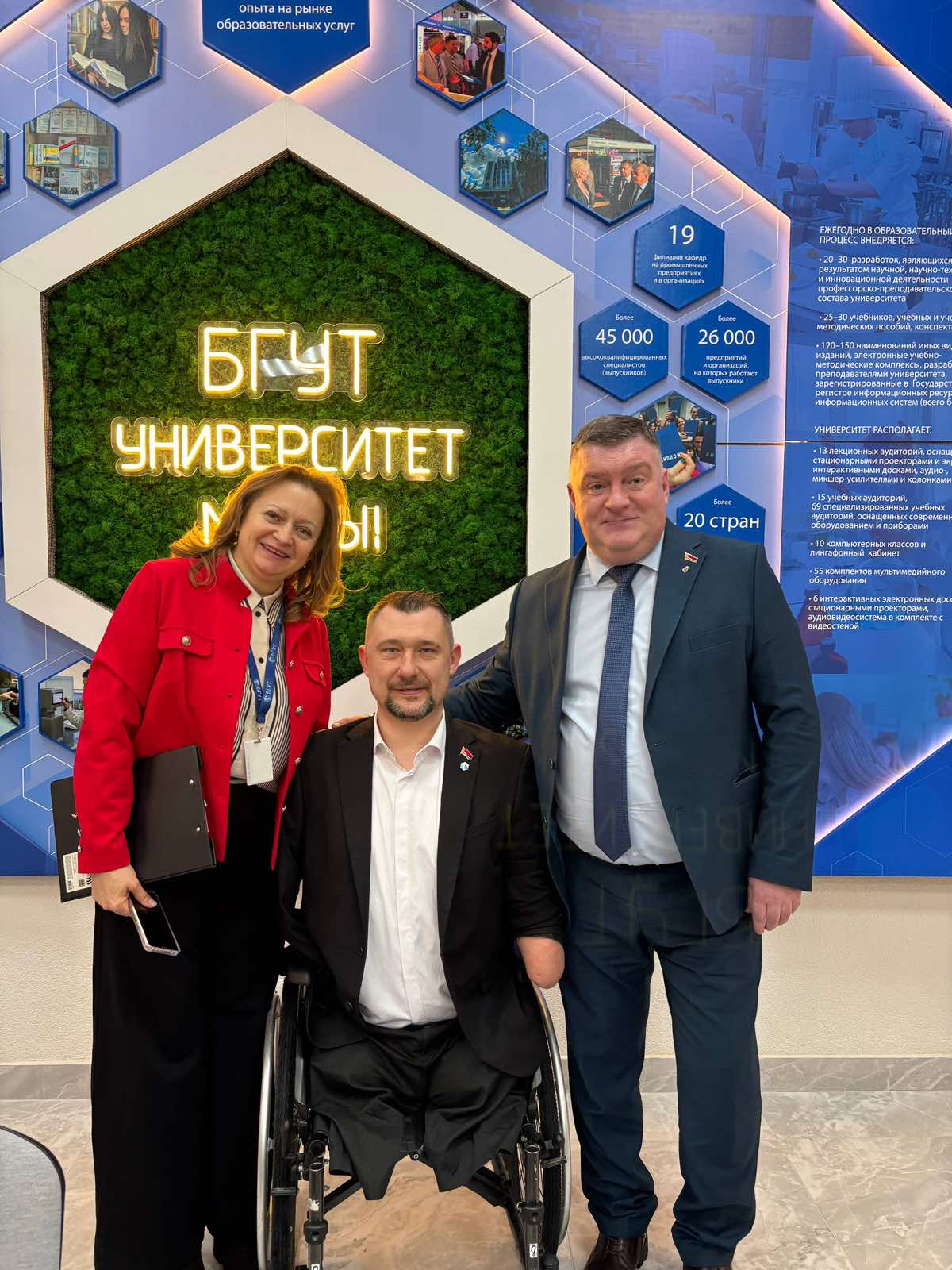 Перед началом встречи Алексей Талай посетил музей истории университета, где познакомился с традициями и достижениями БГУТ. Ректор университета Максим Александрович Киркор вручил гостю нагрудный знак университета, отметив его вклад в развитие гуманитарных инициатив и поддержку молодежи.