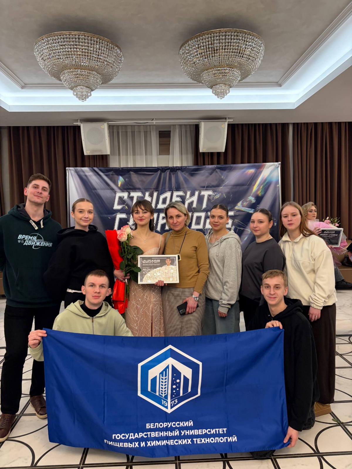 26 февраля в Минске ярко и громко прошел финал республиканского конкурса "Студент года 2025". Всего в проекте приняли участие около 150 конкурсантов и только 14 из них, лучшие студенты нашей страны, вчера боролись за это звание. Каждый из них прошел многоступенчатый отбор. Среди них и студентка 2 курса химико-технологического факультета БГУТ – Рейникова Ксения!