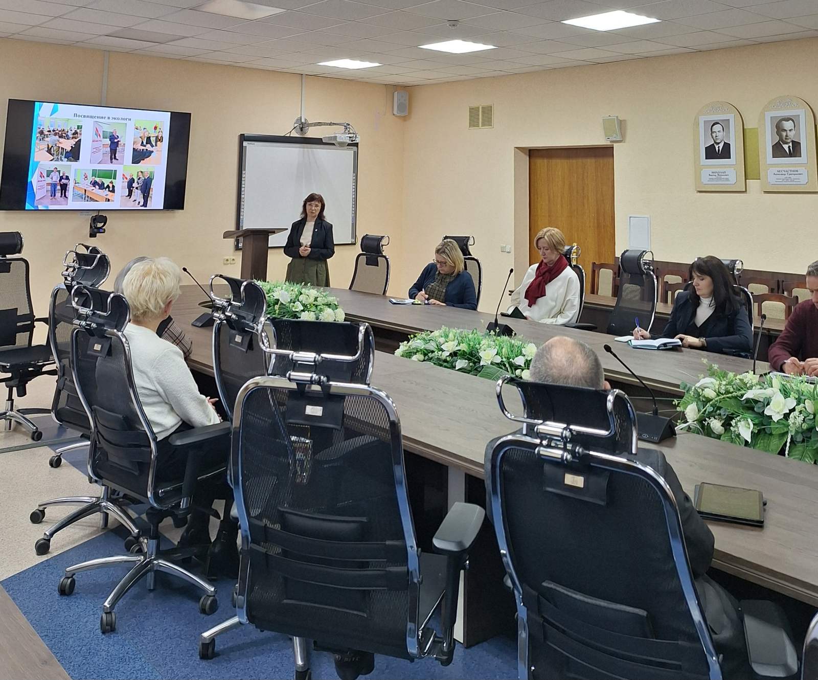 Заведующий кафедрой техносферной безопасности и общей физики БГУТ Баитова С.Н. познакомила присутствующих со специальностями, подготовку по которым осуществляет университет. Также Светлана Николаевна доложила о результатах реализации Дорожной карты по развитию сотрудничества Минприроды и БГУТ.